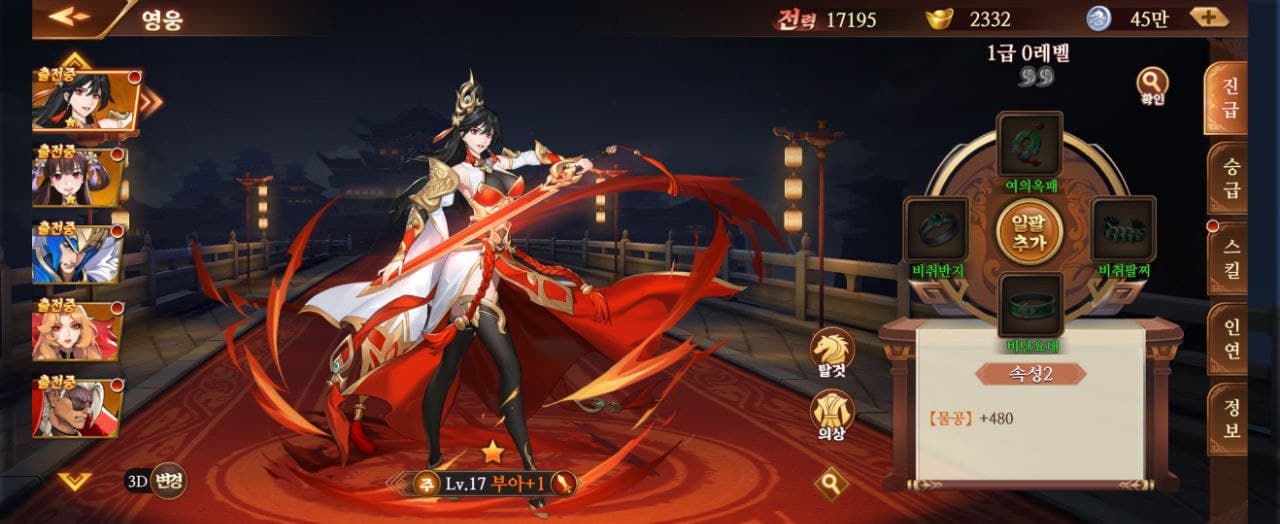 티어는 16 자질이 좋겠고요. 16 자질은 위, 촉, 오 각 나라별 대표 영웅으로 보시면 되겠습니다.